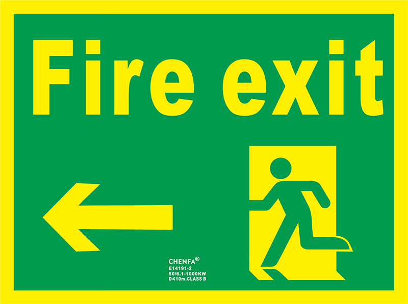 Left Fire Exit Sign Glow In the Dark Photoluminescent Fire Safety Signs Escape Sign E14191-2